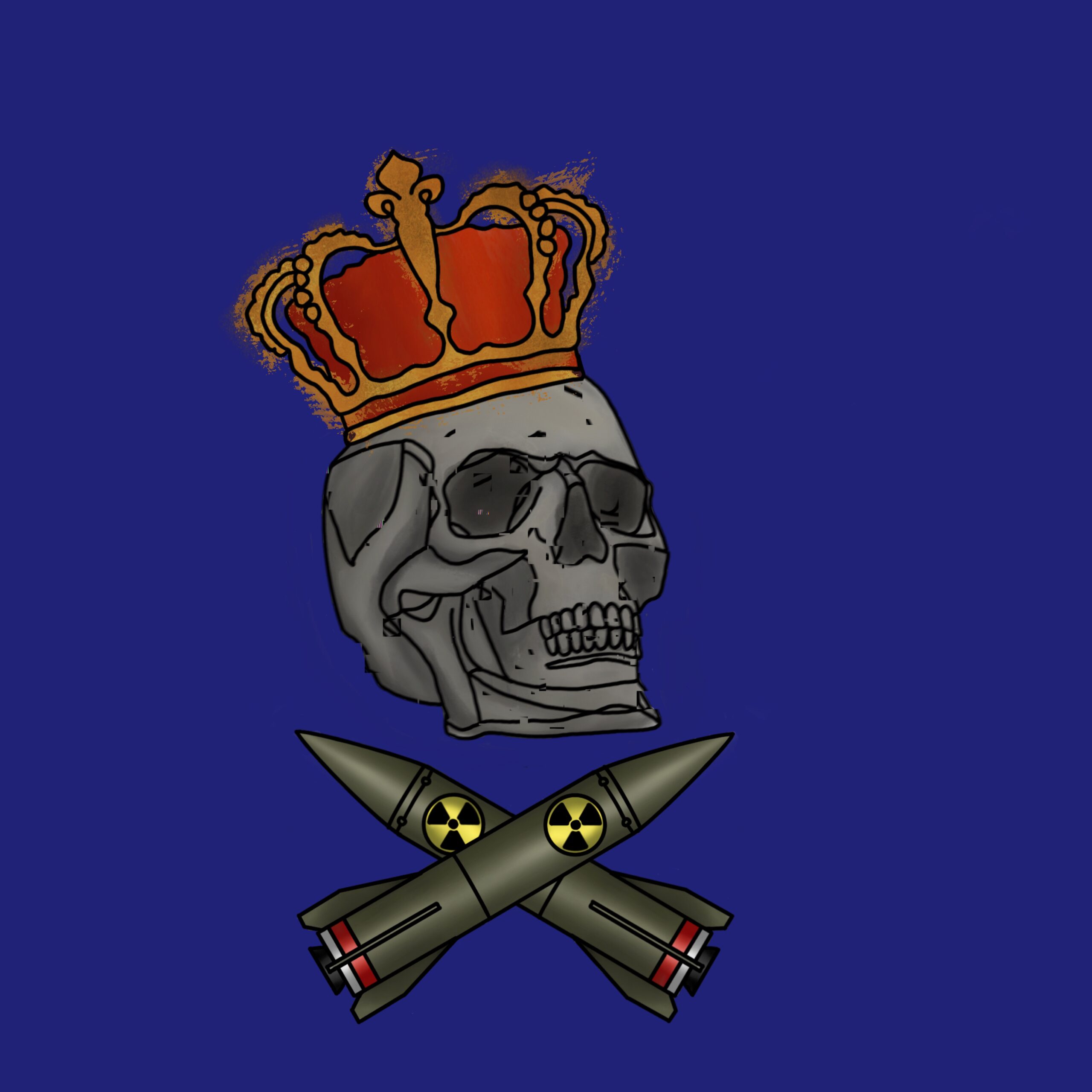 Lyra shared that, after listening to the music, she tried to capture the feel of the whole Dream of Kings song suite with one image using digital media. Her crisp piece spoke to the ephemeral nature of power. Rooted in a traditional Jolly Roger, a long-dead king with a luscious red and gold crown is surrounded by the instruments of destruction that both enabled and eliminated his ability to dominate the world. The skull is affectionately known as Ozzy, after Shelly’s poem Ozymandias, from which the artwork’s title is taken (and also the name of one of her cats). RIP Ozzy Osbourne, July 2025.