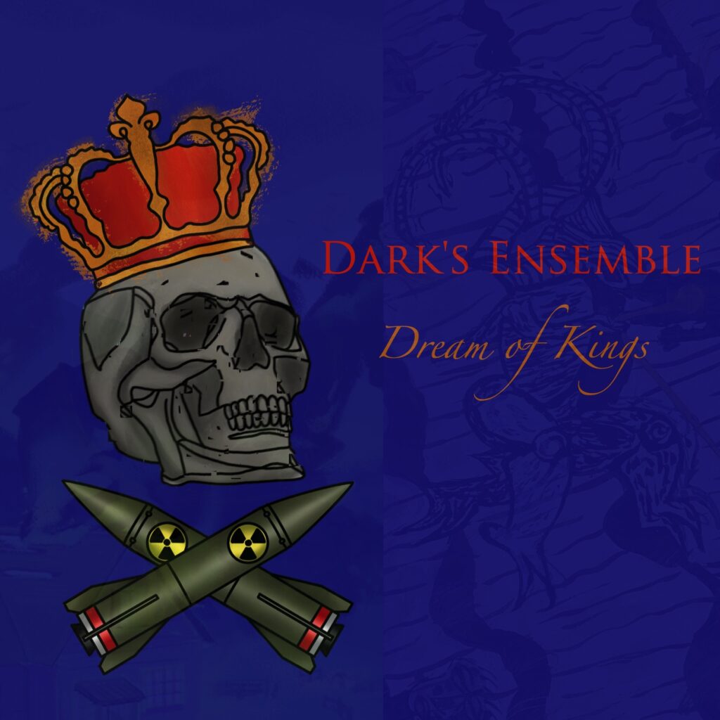 The final album cover layout was designed by Thomas Gutierrez. It is a simple composite of the three pieces above with A Shattered Visage Lies being the forward work and Dream of Kings, the Aftermath and The Spot Where the Last Flower Grew providing subtle texture. The Dark’s Ensemble font is Trajan Pro and Dream of Kings is Zapfino.